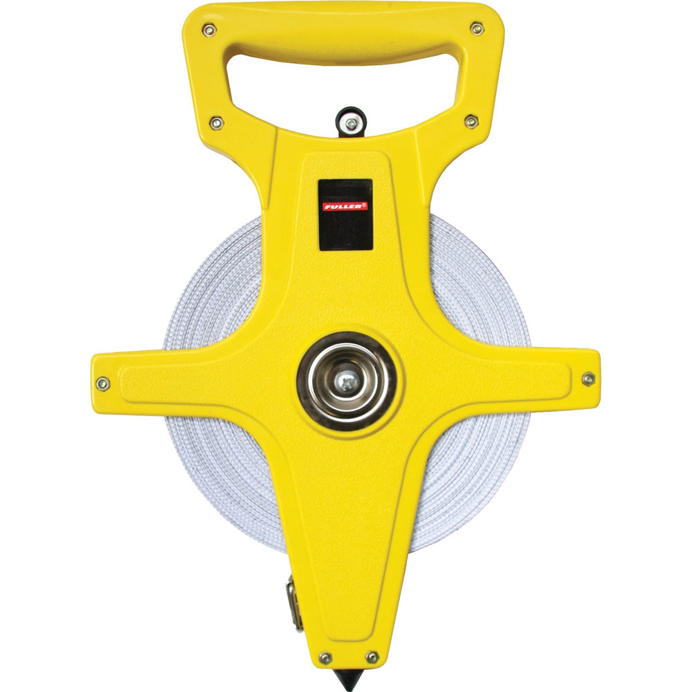 100m Open Reel Fibreglass Tape Measure features easy to read metric markings on each side of a PVC coated, rust and rot free tape.
