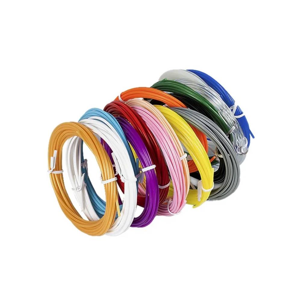 A pack of fifteen coloured 1.75mm PCL filament to suit PCL 3D printing pens. Colours include red, orange, yellow, green, blue, purple, brown, light pink, white, light grey, black, sky blue, pink, light green and light gold.