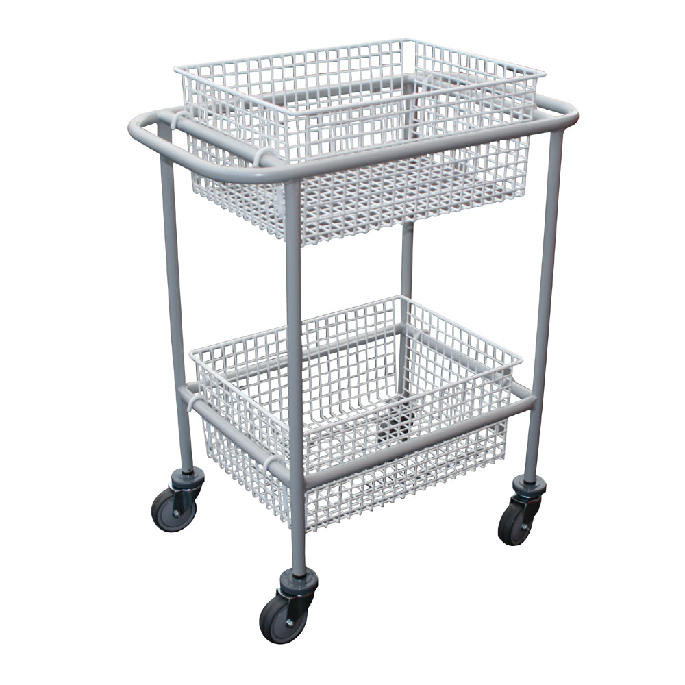 The trolley comes fitted with removable, thermoplastic-coated wire baskets, each with a 47L capacity, making it ideal for handling mail, books, stock, or kitchen items. The 100 mm swivel castors ensure smooth manoeuvrability, even when fully loaded, while the ergonomic handle height allows for comfortable use.