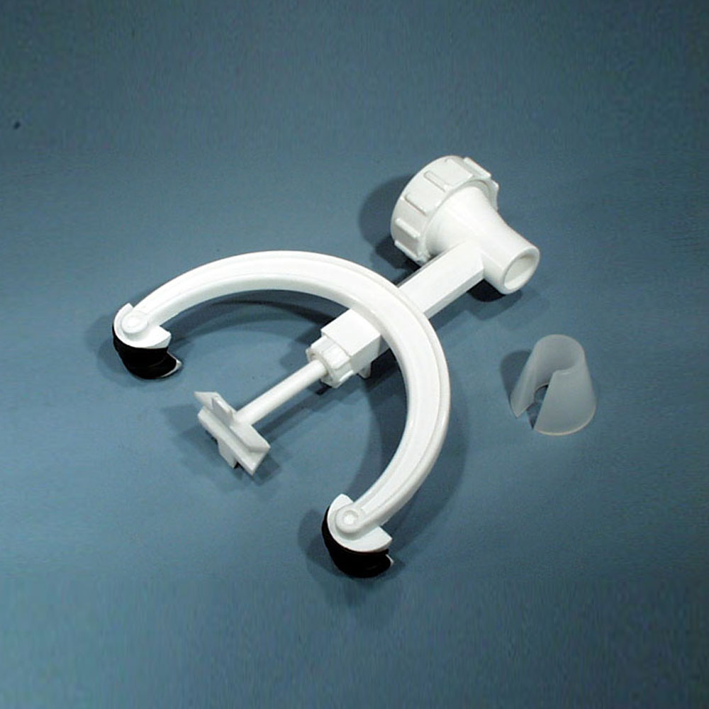 Polypropylene single place burette clamp for mounting on a retort stand. Spring-loaded.