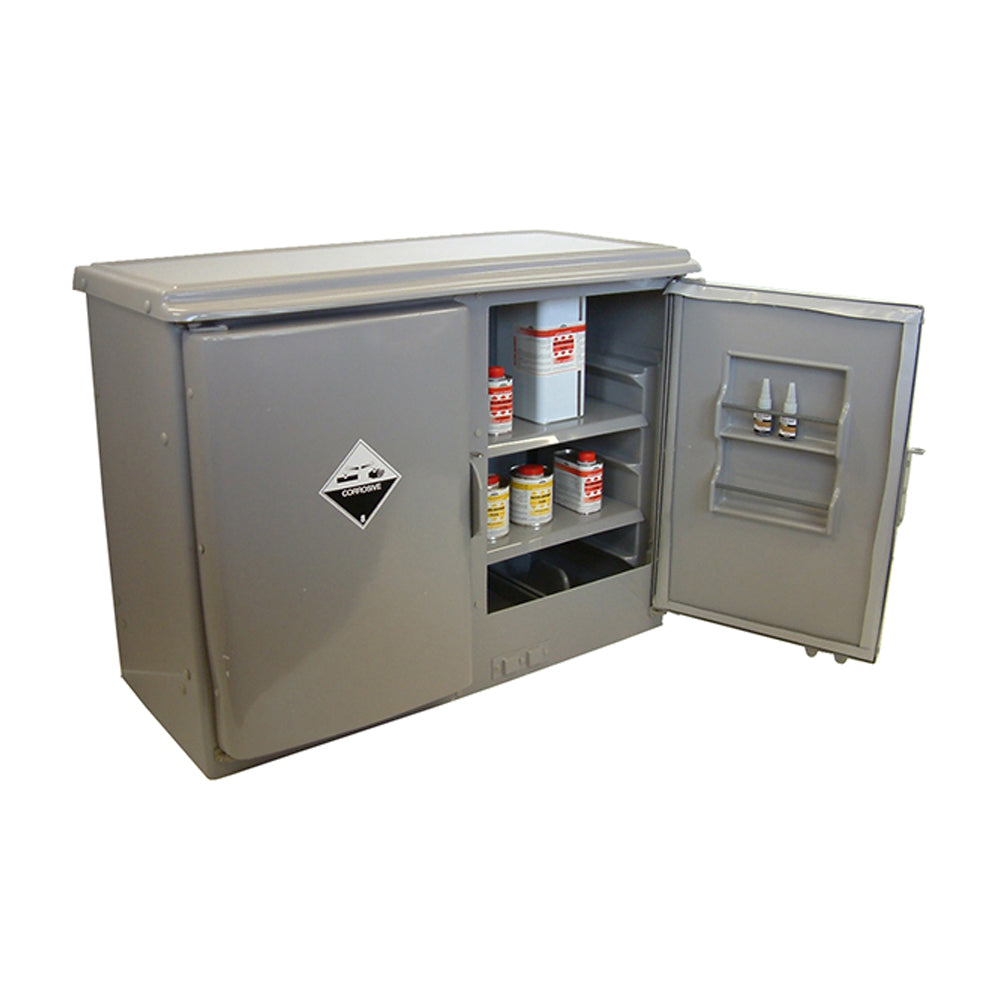 Corrosives Cabinet PVC 140L, 2-Chambers, Under-Bench
