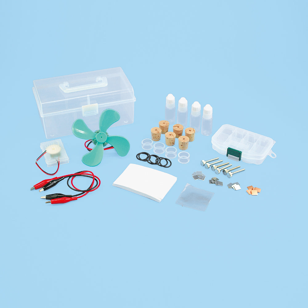 This kit constructs a Daniel battery with a small amount of solution. By assembling the positive and negative electrodes separately and touching the two, electromotive force is generated and a battery is created. By making each electrode from a variety of metals and solutions, students can observewith the difference in electromotive forces. Only two drops of the solution is required. Easy to assemble and easy to understand the internal structure. A relatively high voltage is generated between the electrode plates.