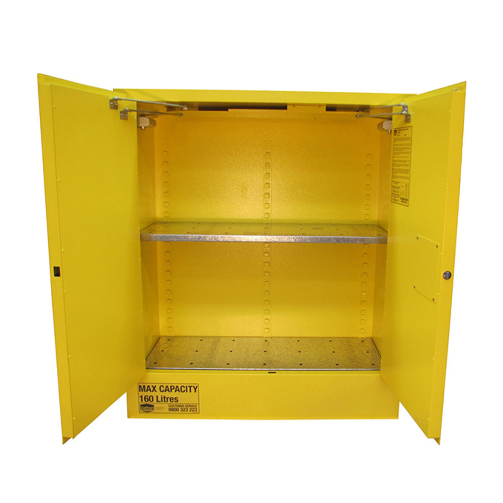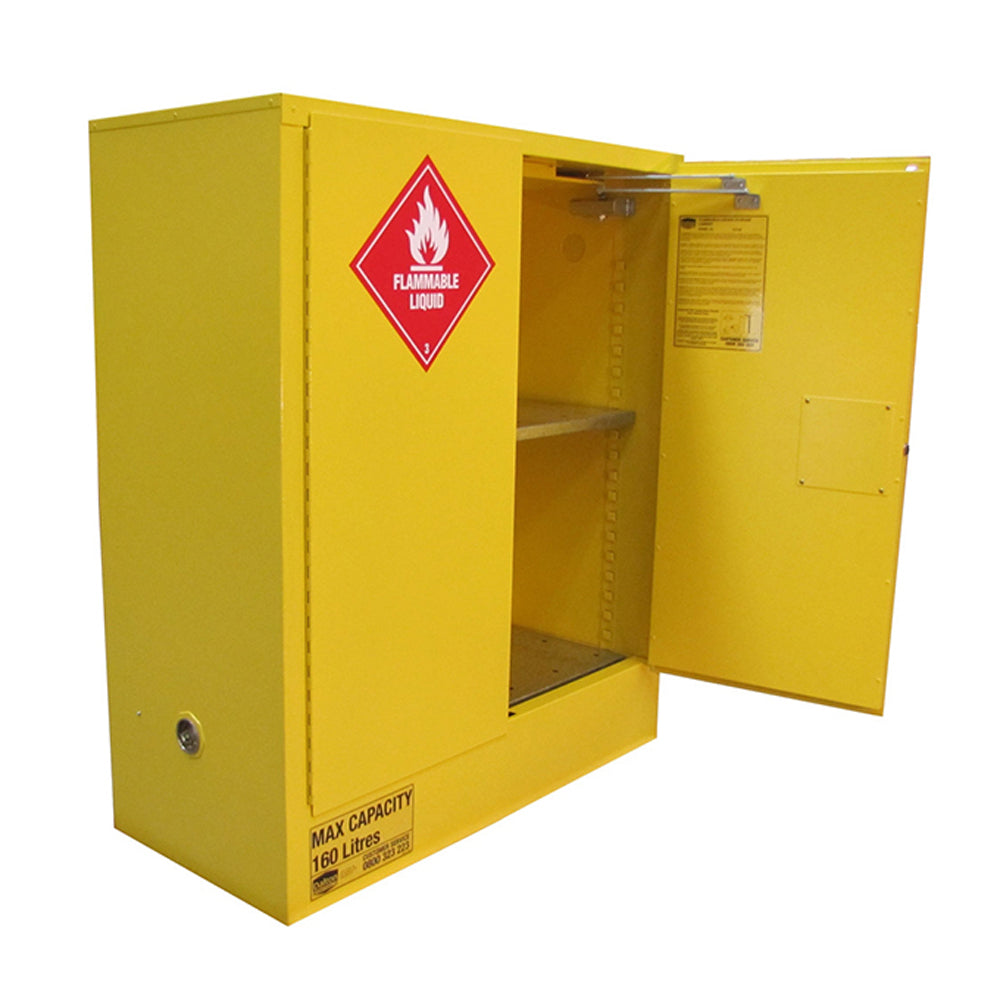 This flammable liquid storage cabinet is suitable for storage of class 3 flammable or combustible liquids such as paint, solvents, petrol, thinners, kerosene, turpentine, white spirits, alcohols, diesel, linseed oil and more. It is manufactured to meet AS 1940 standards for the storage and handling of flammable and combustible liquids.