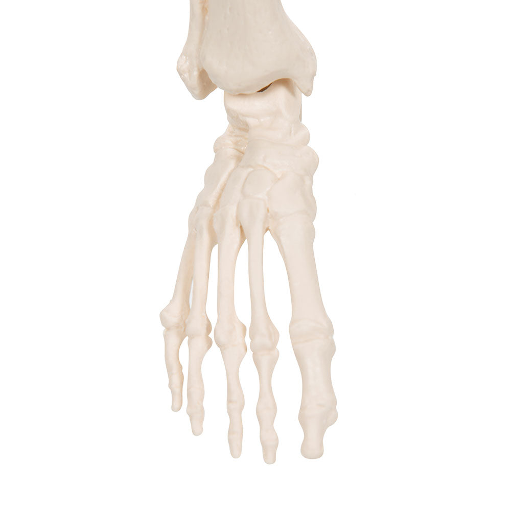 Top of the range mini human skeleton. Skillful 3B engineers using powerful hardware and software optimized the process of reproducing miniatures in order to keep all anatomical details and structures even at half natural size (80 cm). This mini skeleton can be taken off of its base when required. The skull can be removed and disassembled into three parts (skullcap, base of skull, mandible). The arms and legs are removable. The hip joints are specially mounted so their natural rotation can be demonstrated.