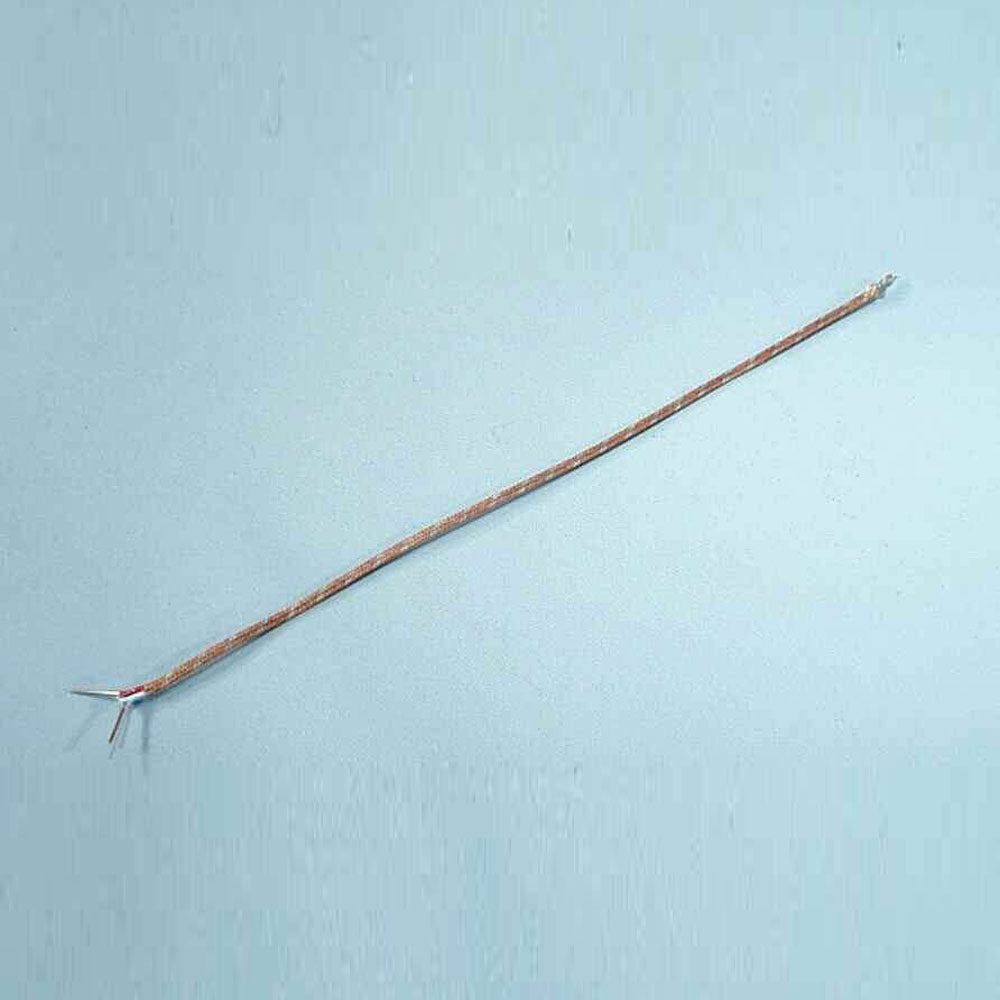 This Thermocouple (called a 'K' type) is a simple piece of standard thermocouple cable, high temperature glass insulated, 200mm long, with the 2 cores welded together at the tip. In the 'K' type thermocouple, the 2 metals are copper & constantan and when the junction between 2 different metals is heated, a small voltage is produced which is proportional with the temperature. This small voltage can be used with a controller to accurately control temperature.