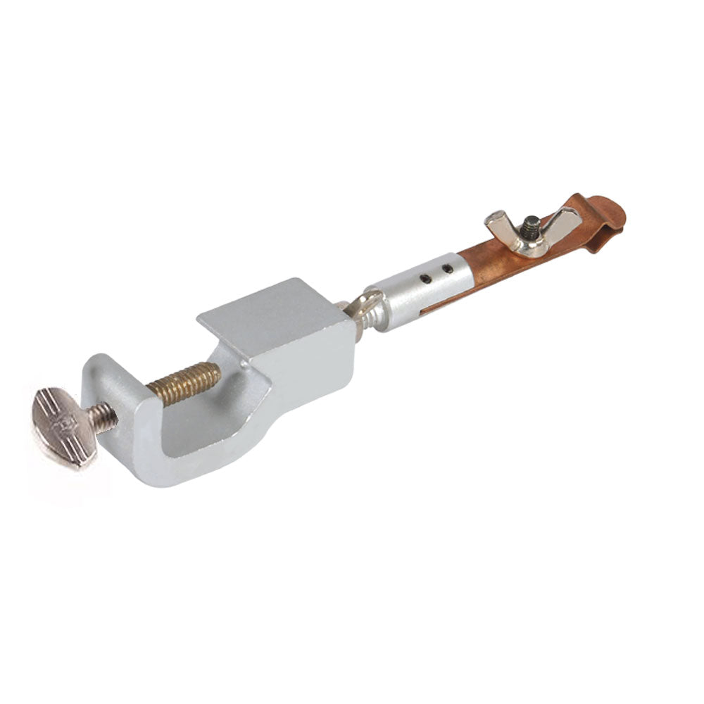 Provides a convenient bosshead clamping system for holding a thermometer on a retort stand. The barrel swivels adjustably and locks to hold thermometer on any angle.