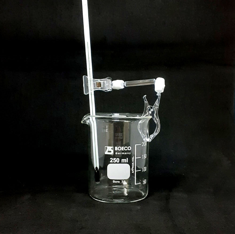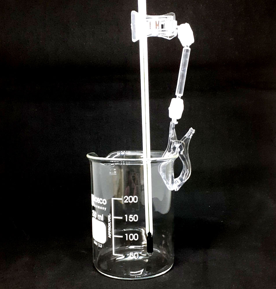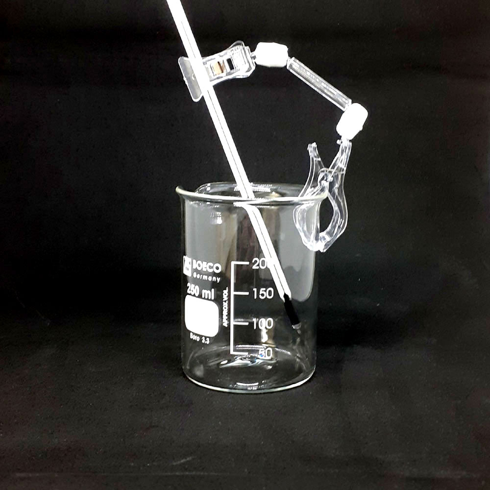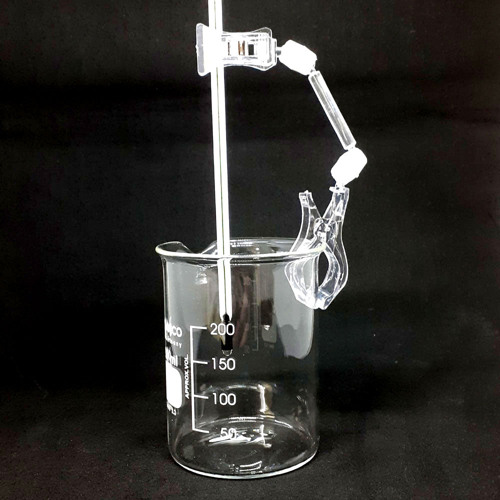 This handy PLASTIC clamp fits any thermometer and can be shaped into almost any position due to its unique design. Designed for bench work. Not suitable for high temperature work over Bunsen Burners.