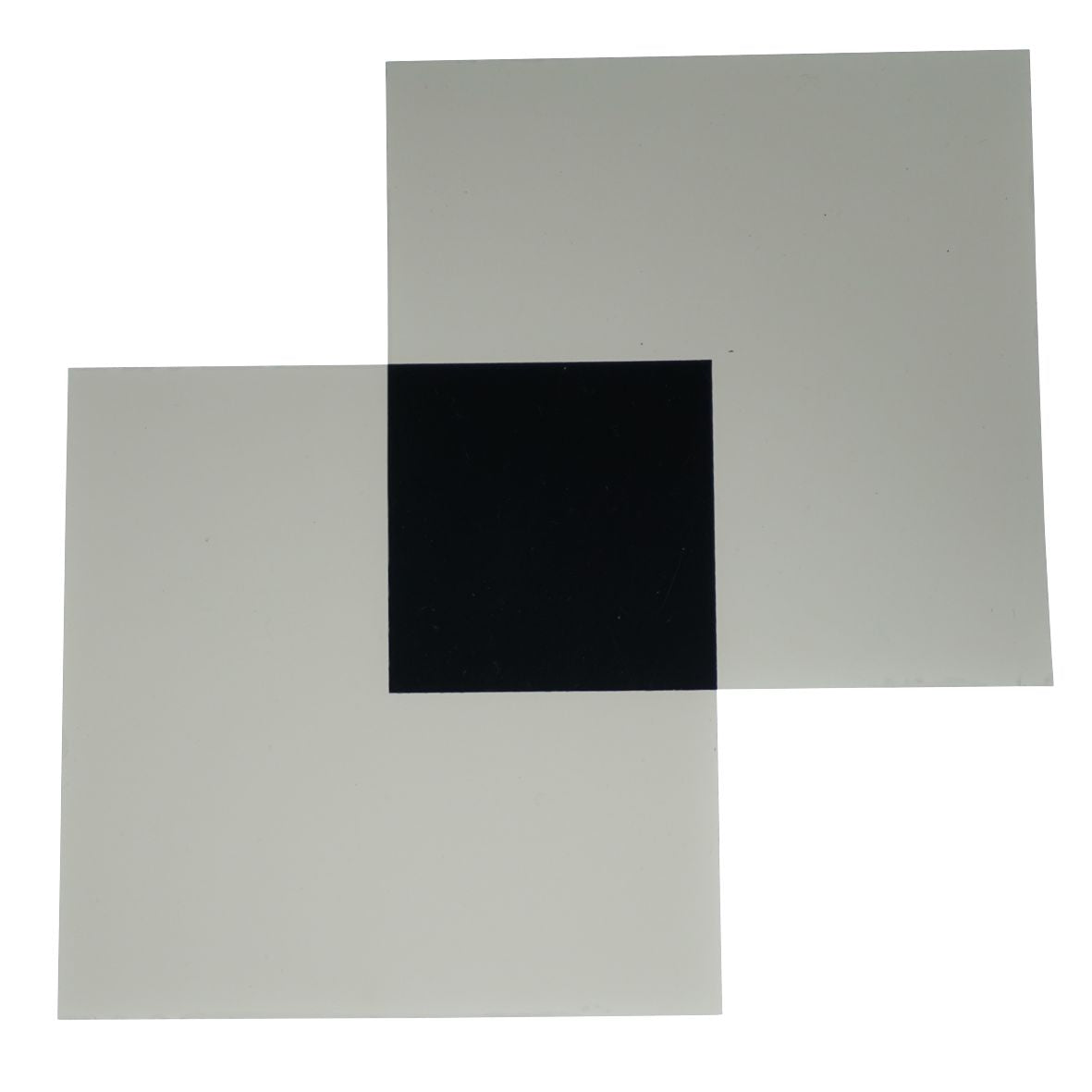 Two sheets which can be used to demonstrate light polarisation by rotating one over the other. May be cut into smaller sizes. 100 x 100mm x 0.18mm (L x W x Th).