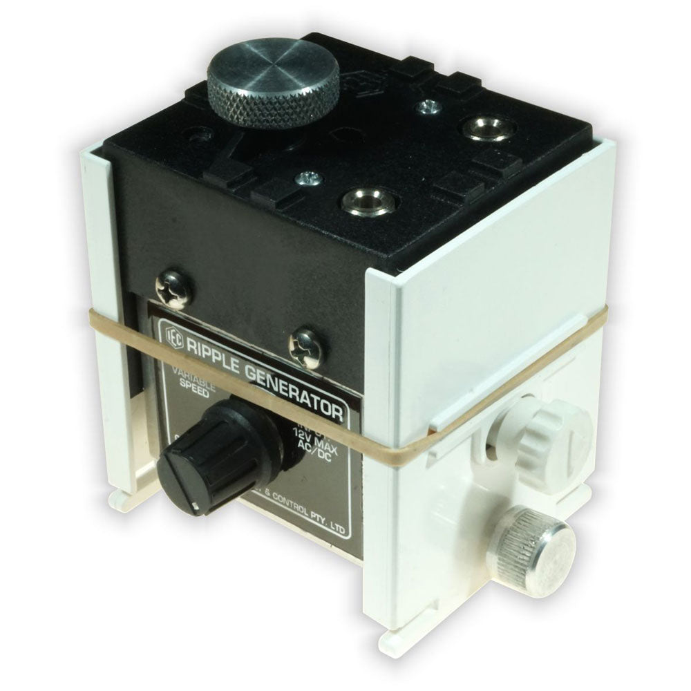 Ripple Tank Ripple Generator complete, gear driven, adjustable phase, adjustable speed with integral speed control. Powered from any AC or DC power source up to 12V. Clamps to s/steel support rail over the tank and can carry the various ripple makers.